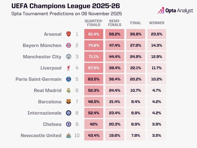 OPTA predicts the latest Champions League qualification and title probabilities