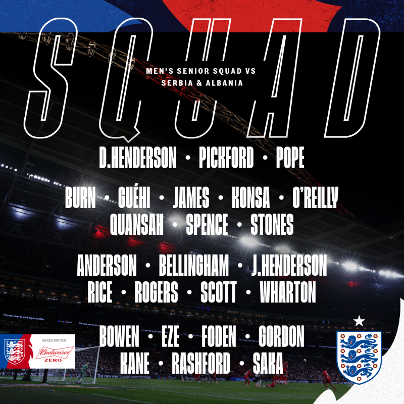 OFFICIAL: England November Squad: Foden, Bellingham returns; Wharton, Scott listed