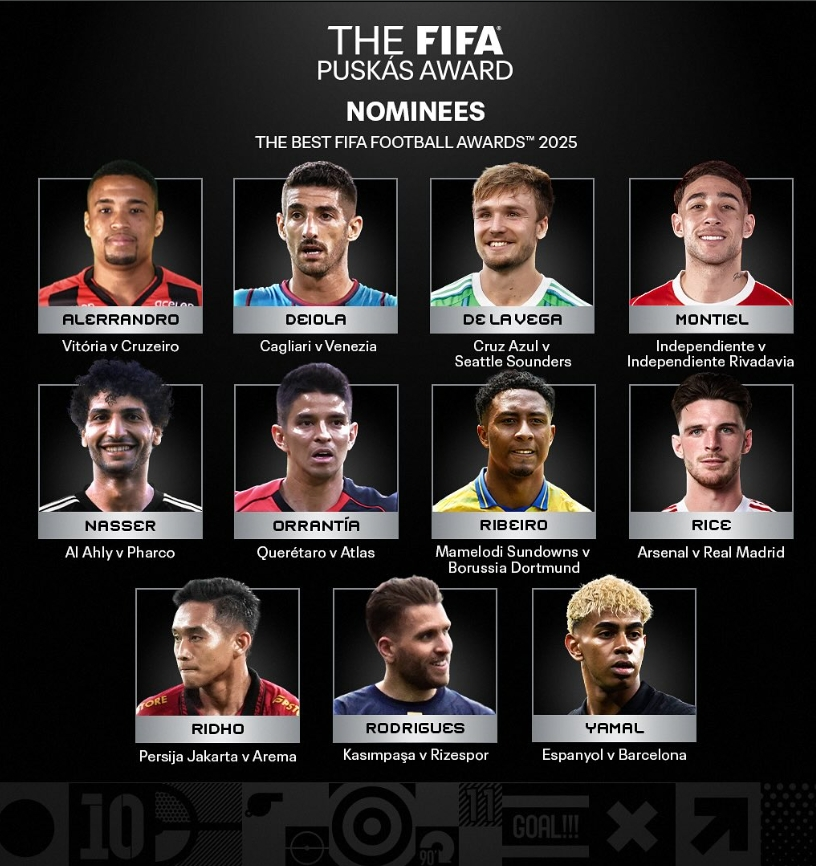 OFFICIAL: 2025 FIFA Puskás Award nominees confirmed as Rice & Yamal nominated