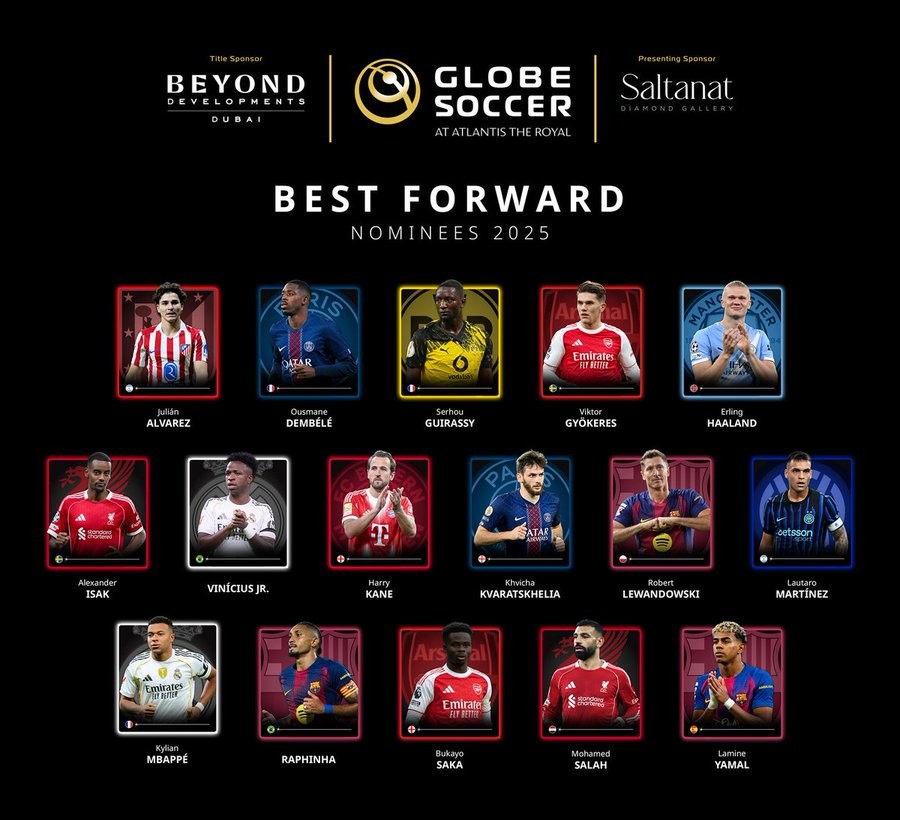On 19 November, The Globe Soccer Awards have announced the nominees for Best Forward of 2025. Mbappé, Yamal, Salah, and Lewandowski are all nominated.