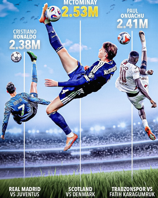 2.53 m, McTominay sets a record for the height of the toe tip in a bicycle kick