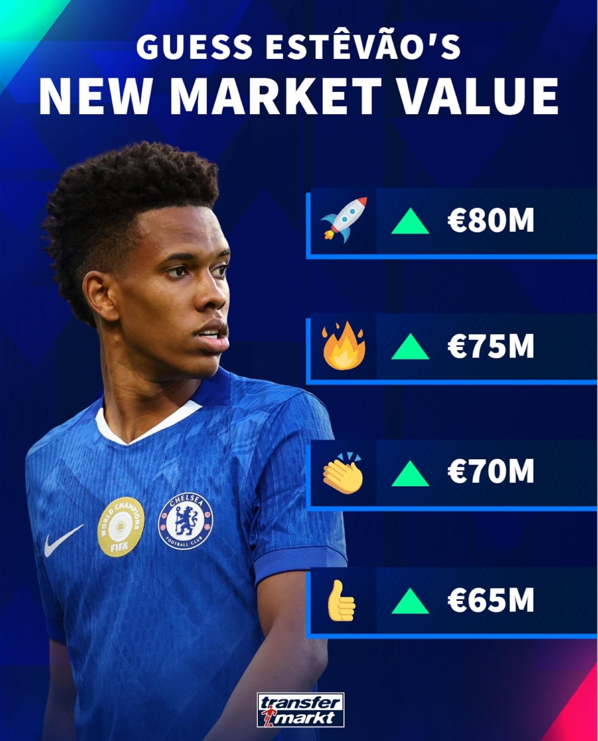 Transfermarkt's prediction for Estêvão's market value: Maximum €80 million