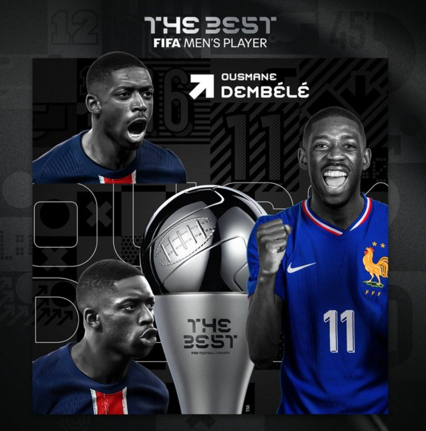 Paris Saint-Germain and France superstar Ousmane Dembele has been voted as The Best FIFA Men’s Player 2025.