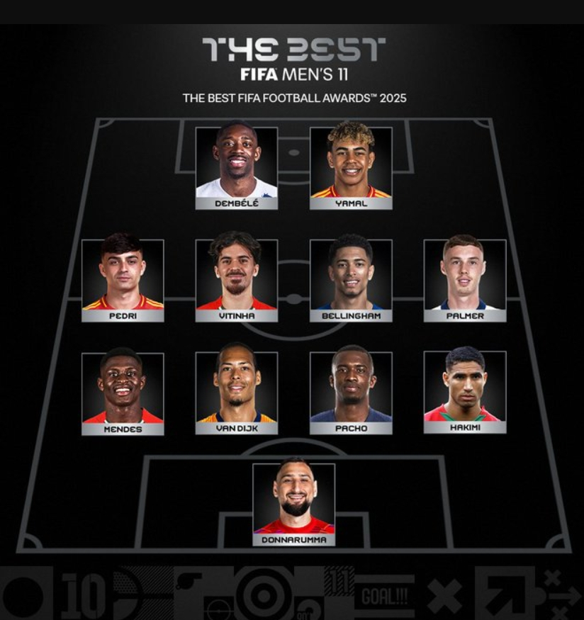 OFFICIAL: Dembele, Yamal, Pedri, Bellingham, Palmer & co. named in FIFA Best XI