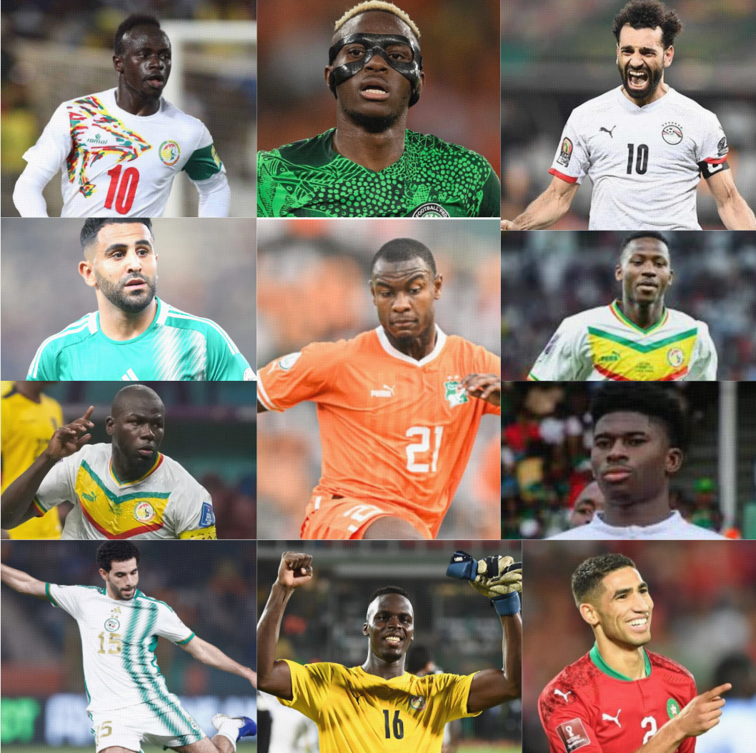 Forwards: Mahrez (Algeria/Al-Ahli), Salah (Egypt/Liverpool), Osimhen (Nigeria/Galatasaray), Mane (Senegal/Al-Nassr)