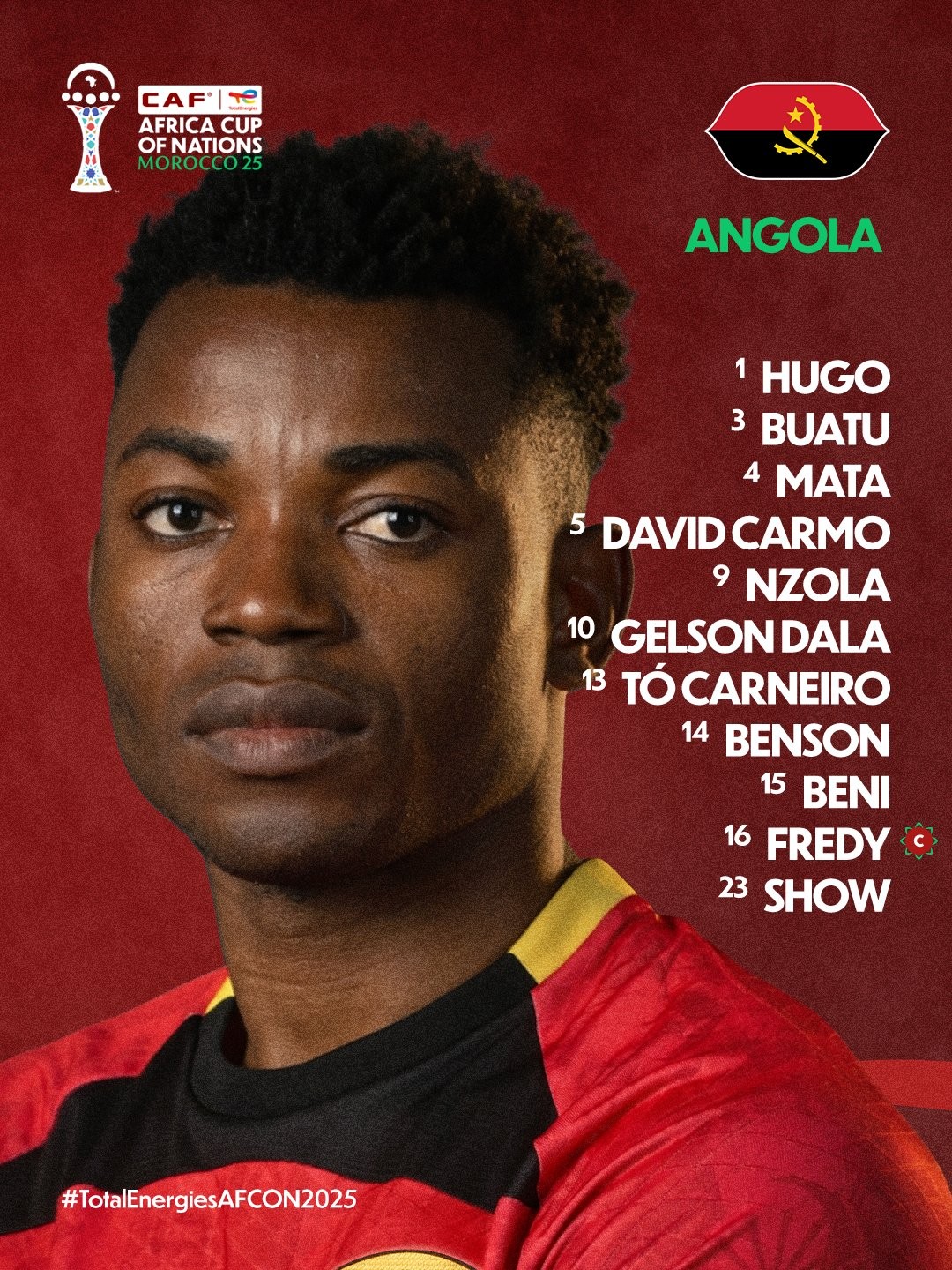 Angola Starting XI: Hugo, Buatu, Mata, David Carmo, Nzola, Gelson Dala, To Carneiro, Benson, Beni, Fredy(C), Show