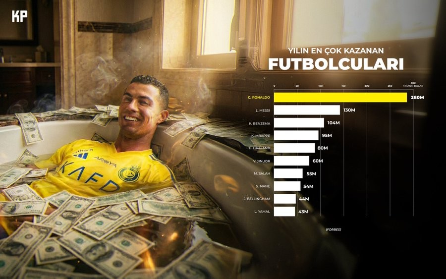 Forbes' 2025 list of highest-paid soccer stars: CR7 tops the list with $280M