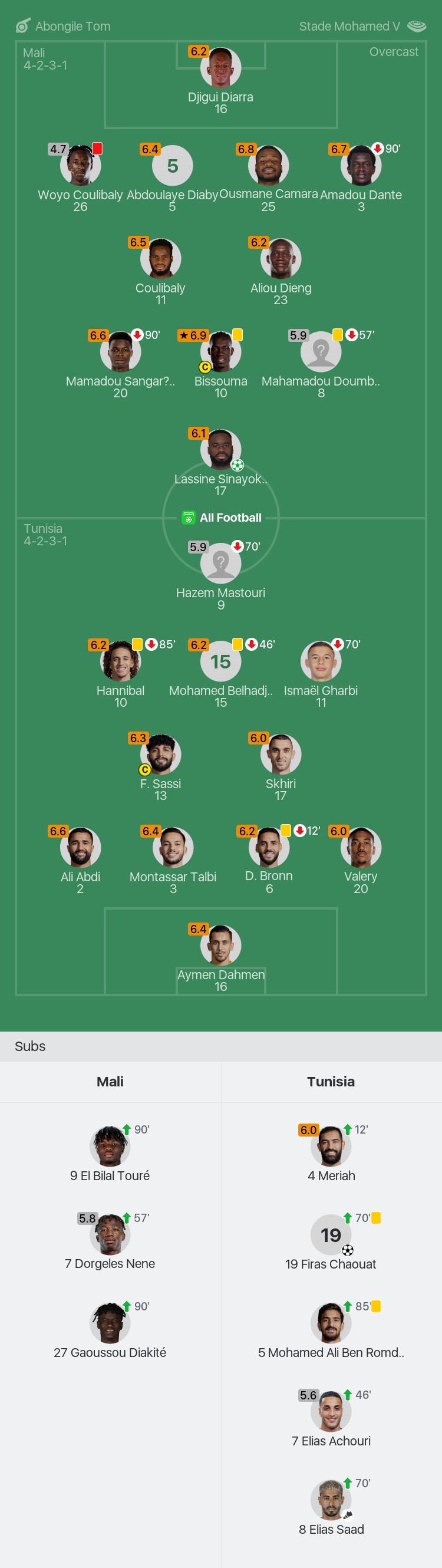 Mali vs Tunisia player ratings: Bissouma MOTM with a rating of 6.9