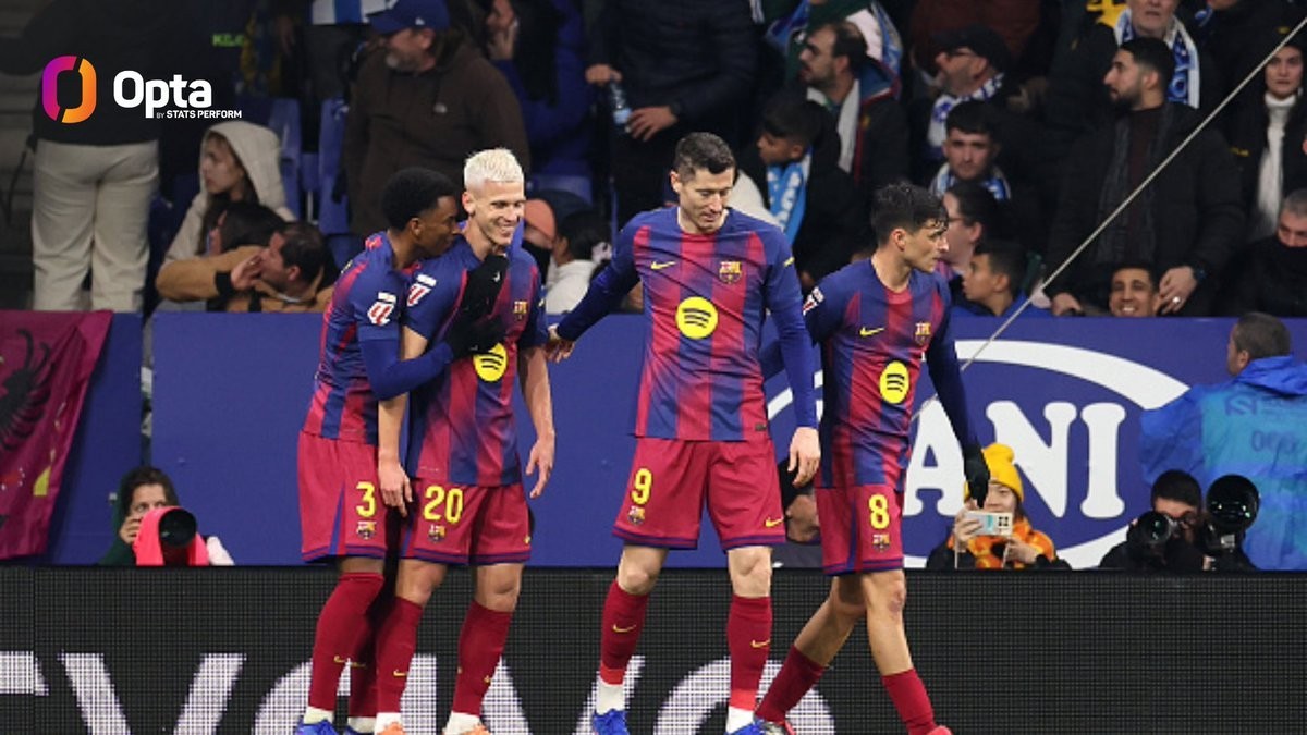 In the 18th round of La Liga, Barcelona defeated Espanyol 2-0 away from home. This marks Barcelona's 39th consecutive La Liga match in which they have scored, the longest streak currently held in the top five European leagues.