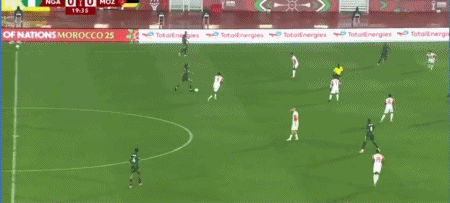 Just five minutes later, the favourites doubled their advantage when Lookman’s cross was delicately helped on by Akor Adams, allowing Osimhen to tap into an empty net at the back post. The striker then flicked a header narrowly wide, Wilfred Ndidi shot off-target from distance, and a rare chance went begging at the other end when Faisal Bangal nodded wide from close range. That was the kind of opening Mozambique needed to make the most of to get back in the game, whereas their opponents could afford to see Adams arrow wide in the closing stages of the first half.