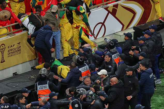 It comes after several fans appeared to try and enter the field of play in the Prince Moulay Abdellah Stadium in a period that saw Senegal manager Pape Thiaw take his players off the field in stoppage time because he didn't agree with a refereeing decision.