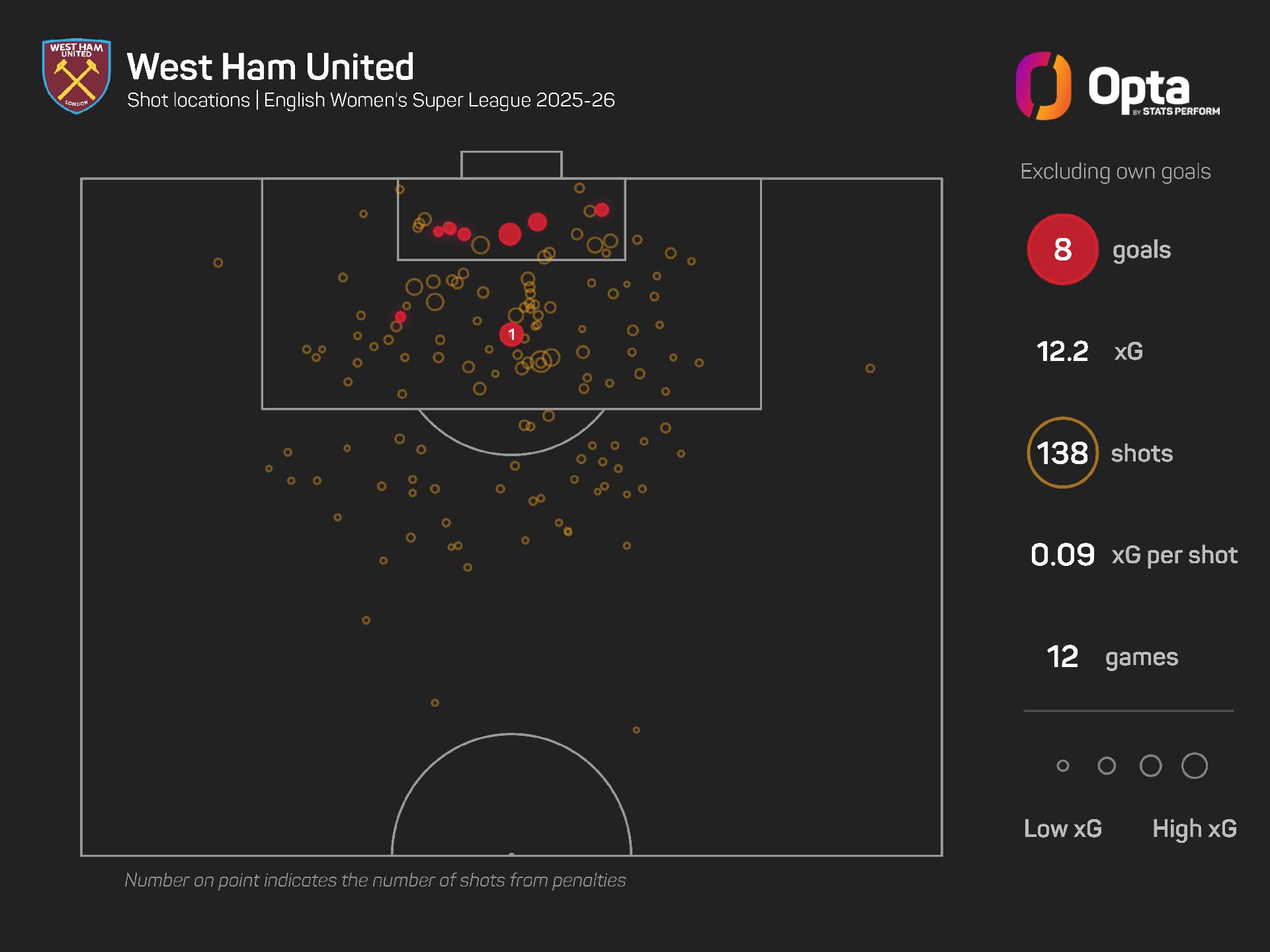 West Ham have failed to score in more games than any other side in the WSL this season (six), which is as many goalless games as they endured in the entirety of last season.