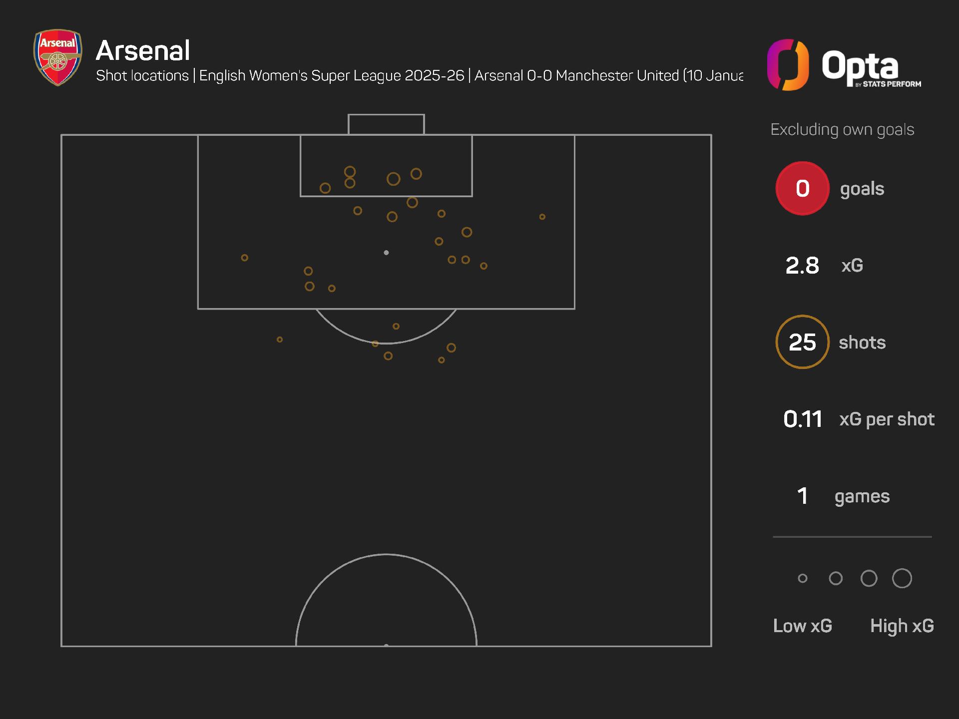 And the Gunners are in need of goals. They have failed to score in two of their last four WSL games, drawing 0-0 with both Spurs and Man Utd. They have a conversion rate of 11% in the league this season, their worst rate in a top-flight campaign since 2015 (10.3%).