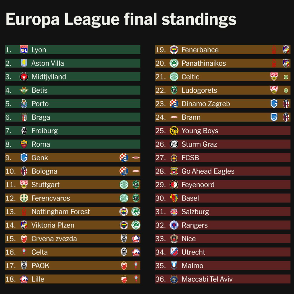 The final Europa League standings — and the potential ties for the teams who qualified for the play-offs...