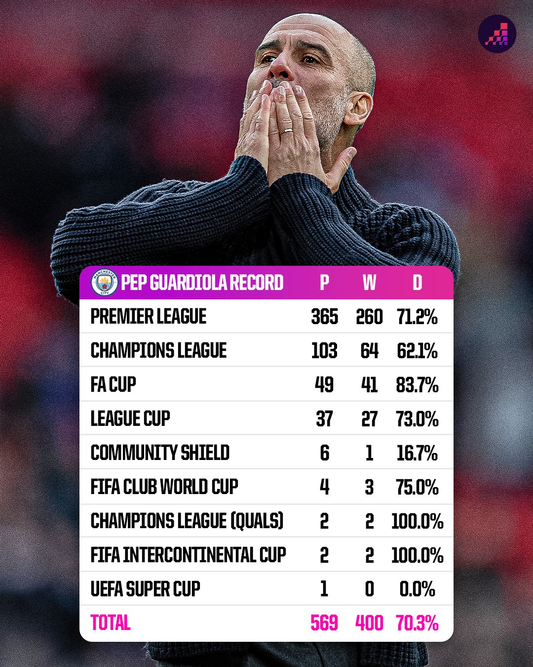 Guardiola is the fastest manager in English history to get 400 competitive wins