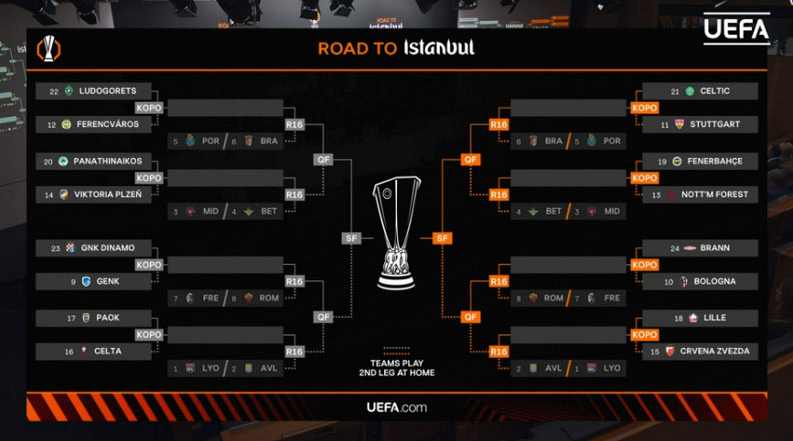 UEL Knockout phase Play-Off result: Forest v Fenerbahce,Celtic against Stuttgart