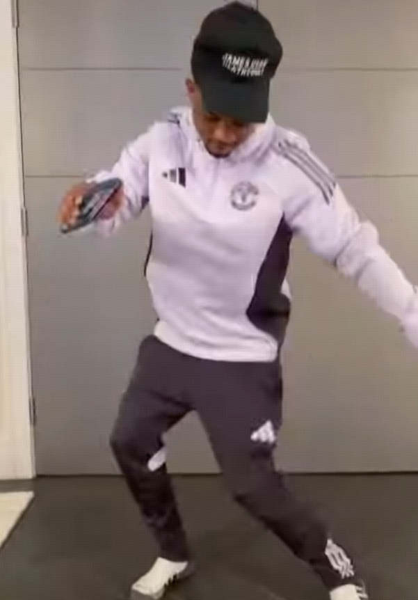 Amad Diallo immitates Cunha's dance move after the match, Lingard responds