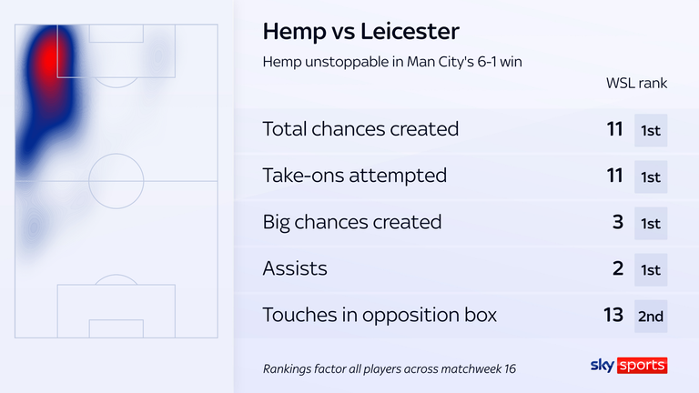 And yet her reaction at the full-time whistle was to criticise her own lack of goal. Hemp's contribution was worth just as much as any of the scorers as City landed 15 efforts on target - the highest total of any side all season. They managed an astonishing 232 final-third passes.