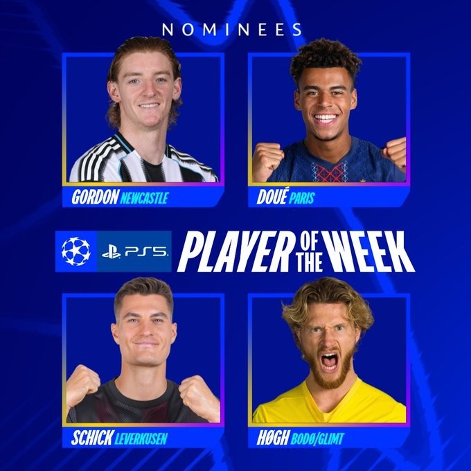 Champions League Playoff POTW: Gordon, Doue, Schick, and Hogh nominated