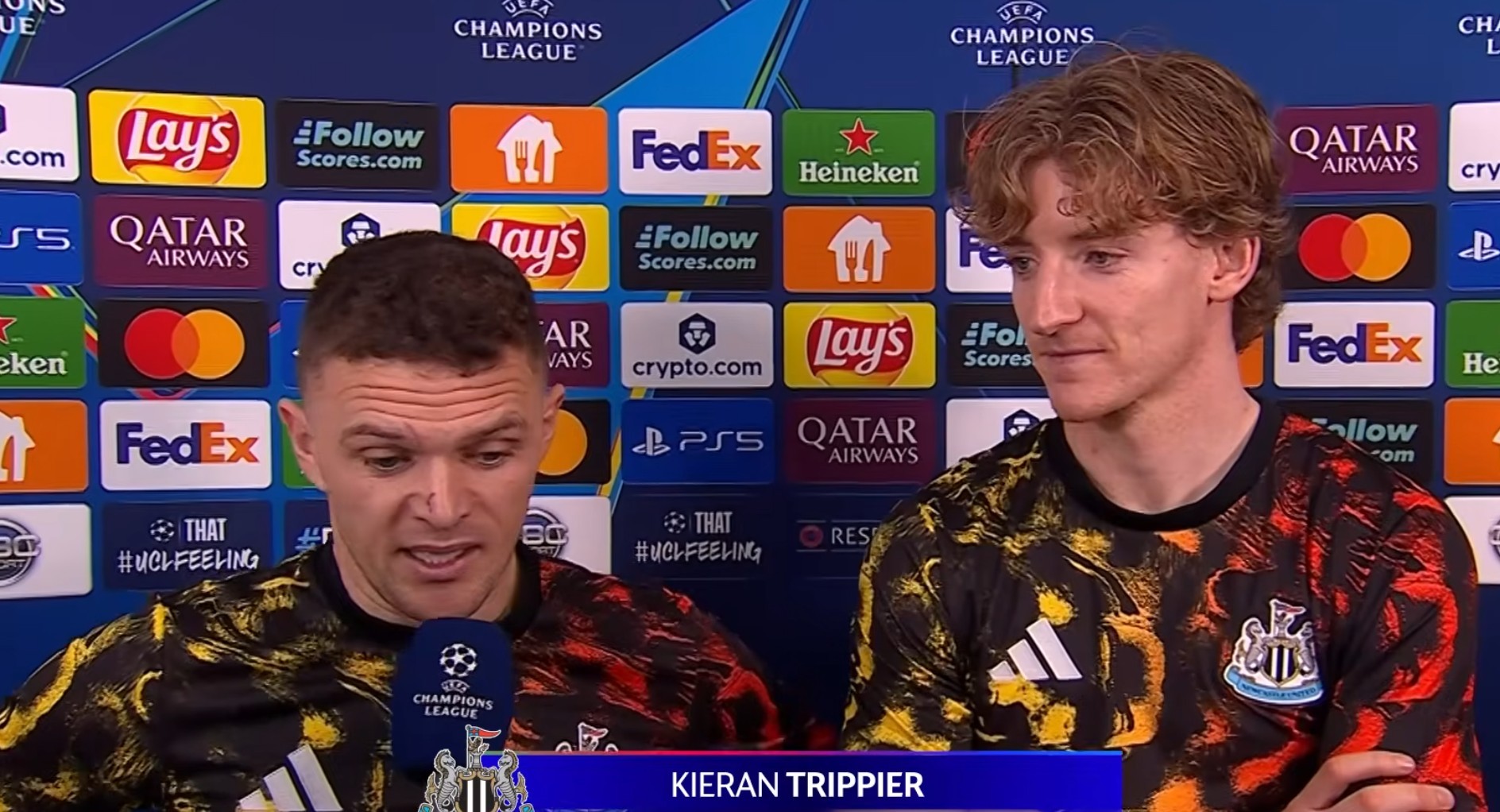 After Newcastle's 6-1 away victory against Qarabag, Newcastle defender Trippier and striker Gordon, who scored four goals in the game, were interviewed by CBS Sports. In the interview, they talked about the dispute over penalty kicks.