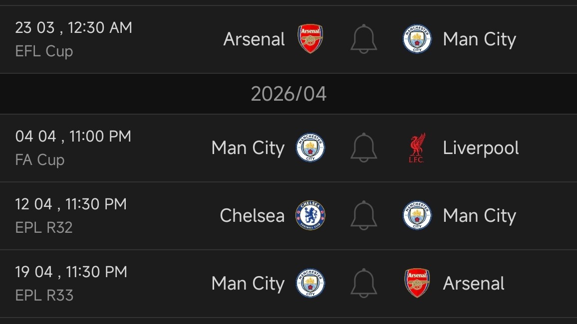 In the FA Cup quarter-final draw, Manchester City have been drawn against Liverpool, with the match scheduled for April 4th. For City, this addition shapes up to be a grueling April schedule.