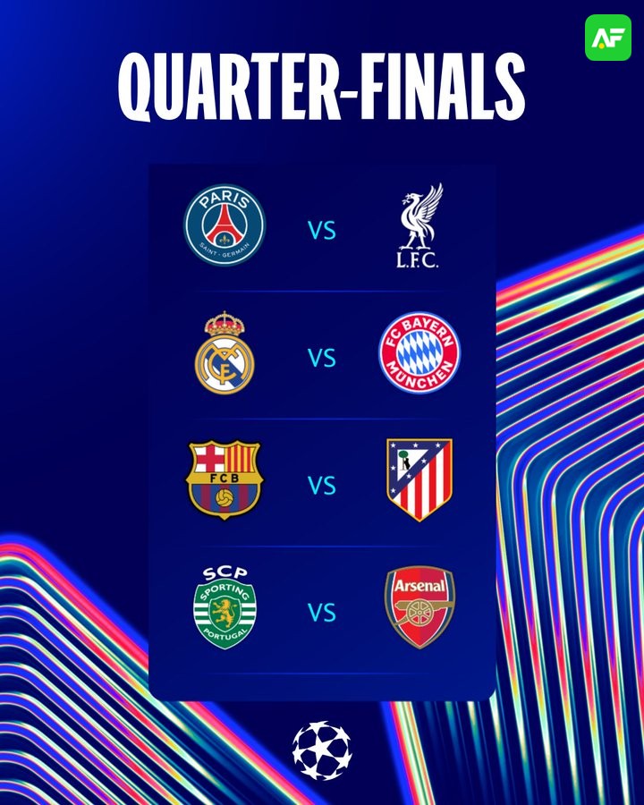 Arne Slot's Premier League champions face last year's winners, French side Paris Saint-Germain, in the last eight.
