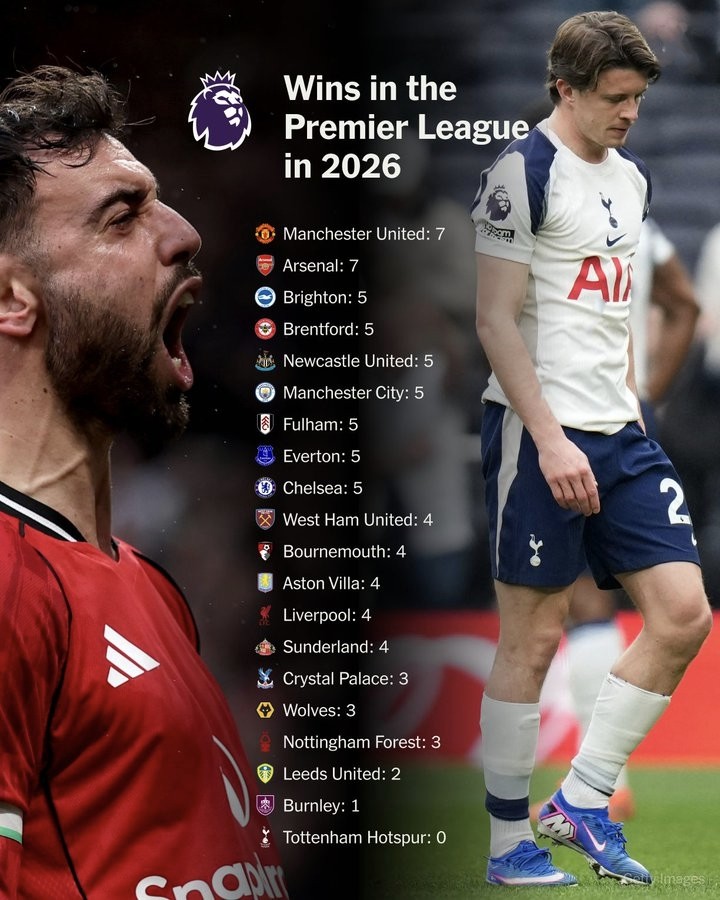 According to statistics, Tottenhma Hotspur is the only team which cannot win a single game in Premier League in 2026.