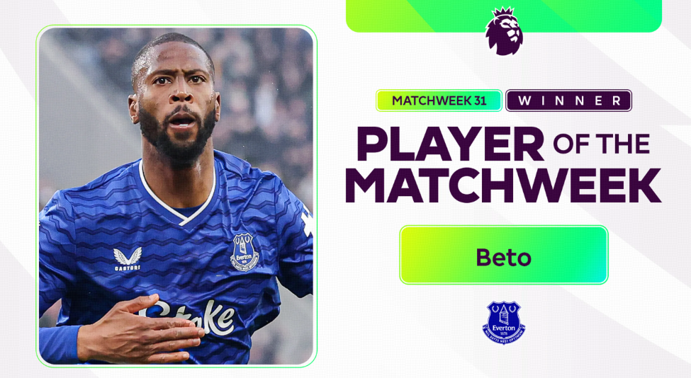 OFFICIAL: 2 goals & 1 assist against Chelsea, Everton's Beto PotM of EPL Week31