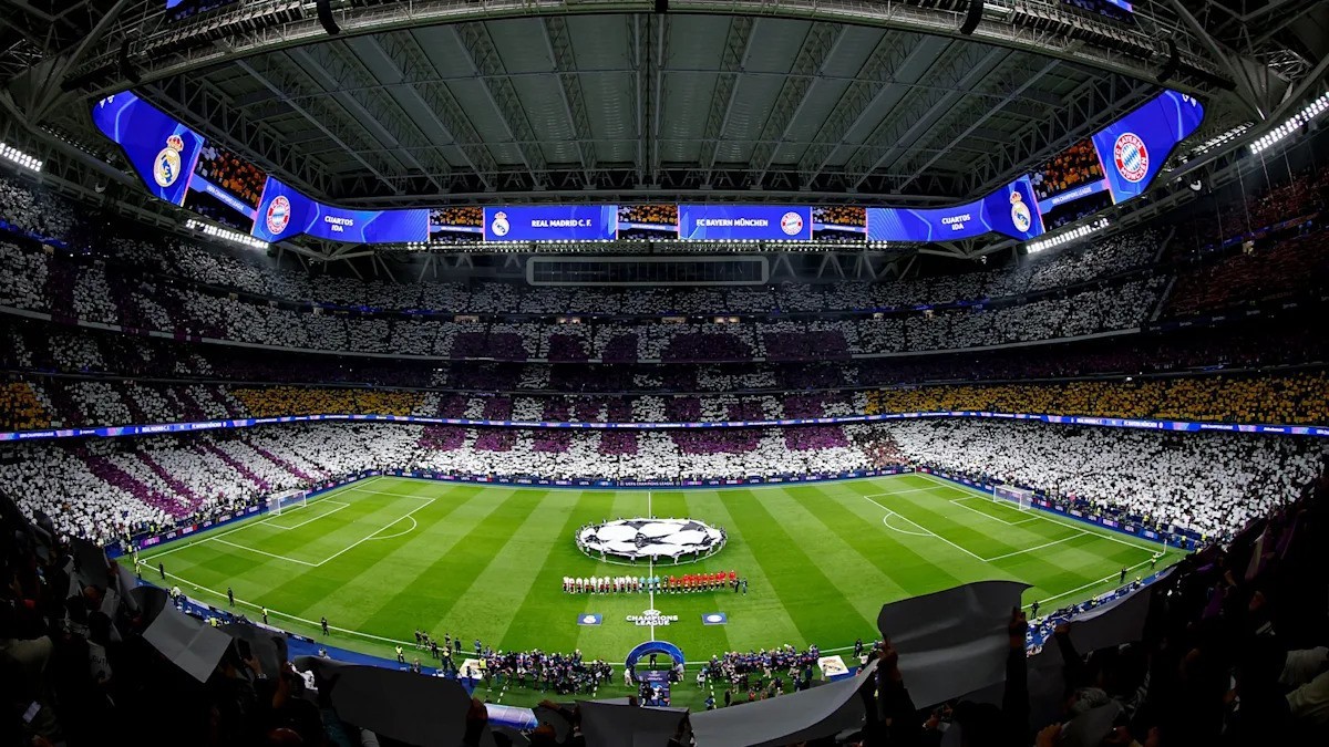 أجواء ديربي أوروبا: ملعب برنابيو يستعرض تيفو بانورامي قبل مباراة ريال مدريد وبايرن ميونخ