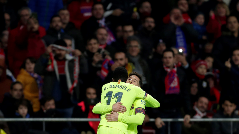 Atletico 1-1 Barcelona: Dembele nets late equaliser as Catalans remain top